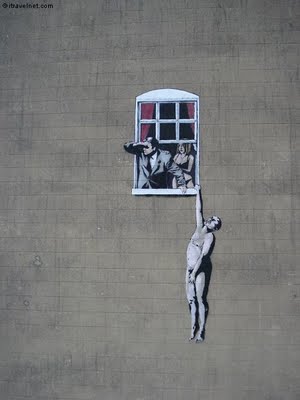 This is a collection of Banksy graffiti is very cool and well known in all circles, especially in the area Bristol, England. Overall there are 25 pieces, this picture was born from a critique of the social circumstances surrounding the will. All have a mission and specific goals will be the existing environment. But still many people who do not understand the meaning of this graffiti, most of them just look at the art itself without looking at their personal. Why graffiti was made? they should realize that this graffiti serves to warn us, whether government or community environment iru own.